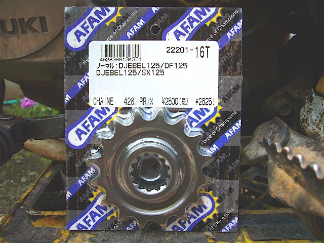 この16Tというのがギアの歯数なので、これを15Tなど歯数に変更することでライダー好みにセッティングするようですが、今回は摩耗したギアの交換目的なのでとりあえず純正同等の歯数にしました。