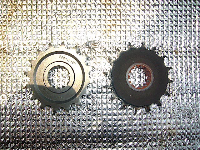 AFAM製の新品と取り外したフロントスプロケットを較べてみると相当摩耗しているのが分かります。