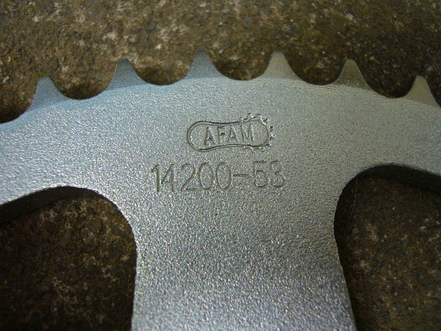 こちらもフロント同様、摩耗がかなり進んでいるので同時に購入していた「AFAM」製の「428-53T」新品のリアスプロケットへと交換です。
