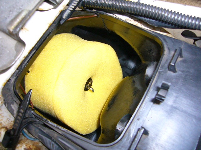 濾紙にオイルを含浸しているタイプのエアクリーナーはよく見かけますが、スポンジにエンジンオイルを含浸させるタイプは交換する時に手がベトベトして気持ち悪いですね。なんだか含浸したエンジンオイルが真夏の暑さで滴りそうだし、かなり吸入効率の邪魔になりそうですが、メーカーがこの方法を指定している以上、その通りにしてみます。