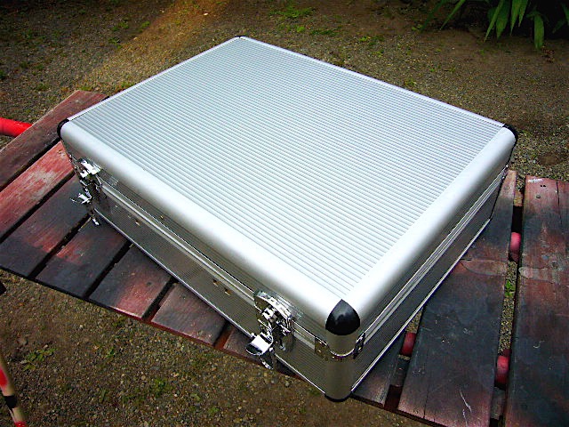 アルミのアタッシュケースはリアボックスに流用する時に「持ち手」が不要となるので取外しました。ケースのバックル部分には簡易的ながらも鍵を掛けられるようになっているので、バイク用に流用した時も駐輪時の防犯として安心です。