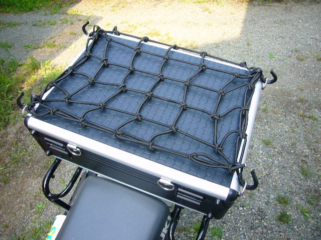 アタッシュケースに吊り金具を装着することで段ボール箱などをアタッシュケースの上に乗せてもゴムバンドやツーリングネットのフックを掛けやすくなり、安定して固定することが可能となりました。
