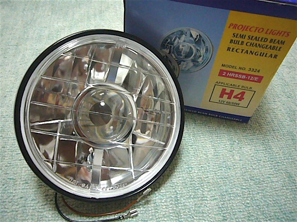 そこでジェベル125の純正ヘッドライトから、より明るく個性的なヘッドライトに交換してみようと考えた時、自動車用として発売されていたマルチリフレクターヘッドライトで、内部にプロジェクター風のレンズが装着されている変わったヘッドライトが販売されていたので、早速入手してみました。