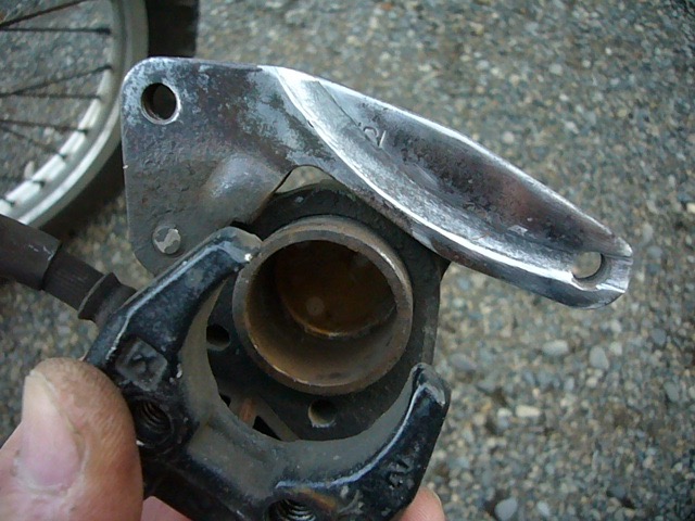 それはキャリパーをフロントフォークに固定しているキャリパーサポート部分で、ここがフロントブレーキディスクの取り付けボルトから少し飛び出しているネオジム磁石と微妙に干渉しているようです。