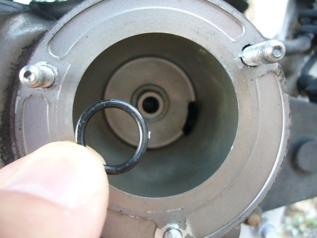 オイルフィルターを装着する前に古いOリングを取り外して新品に交換するのを忘れないよう、サービスマニュアルを良く見て部品の位置を確認しました。