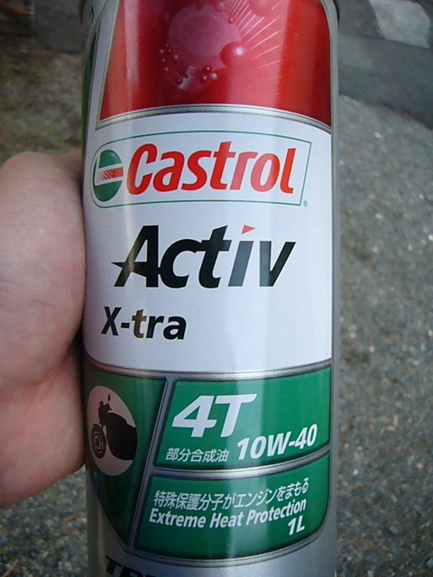 「Castrol」の「Activ X-tra 4T 10w-40 部分合成油」です。